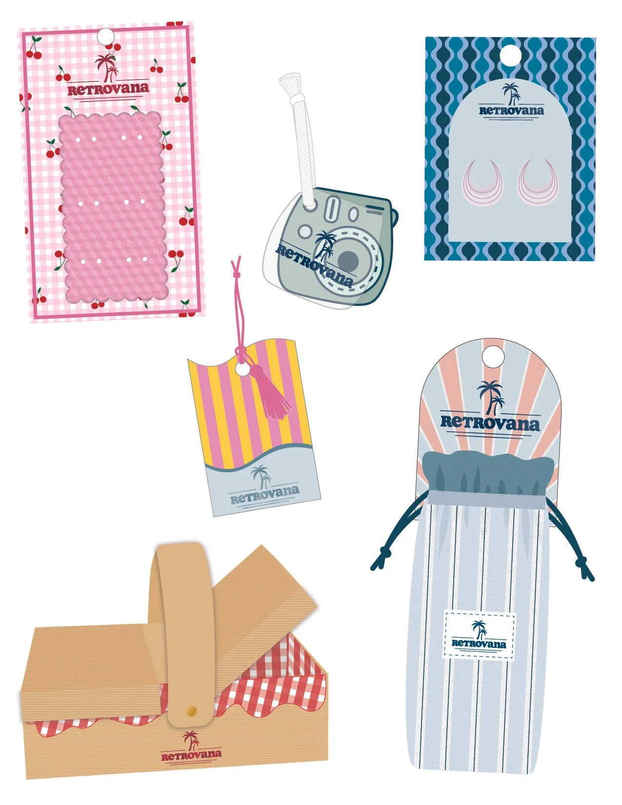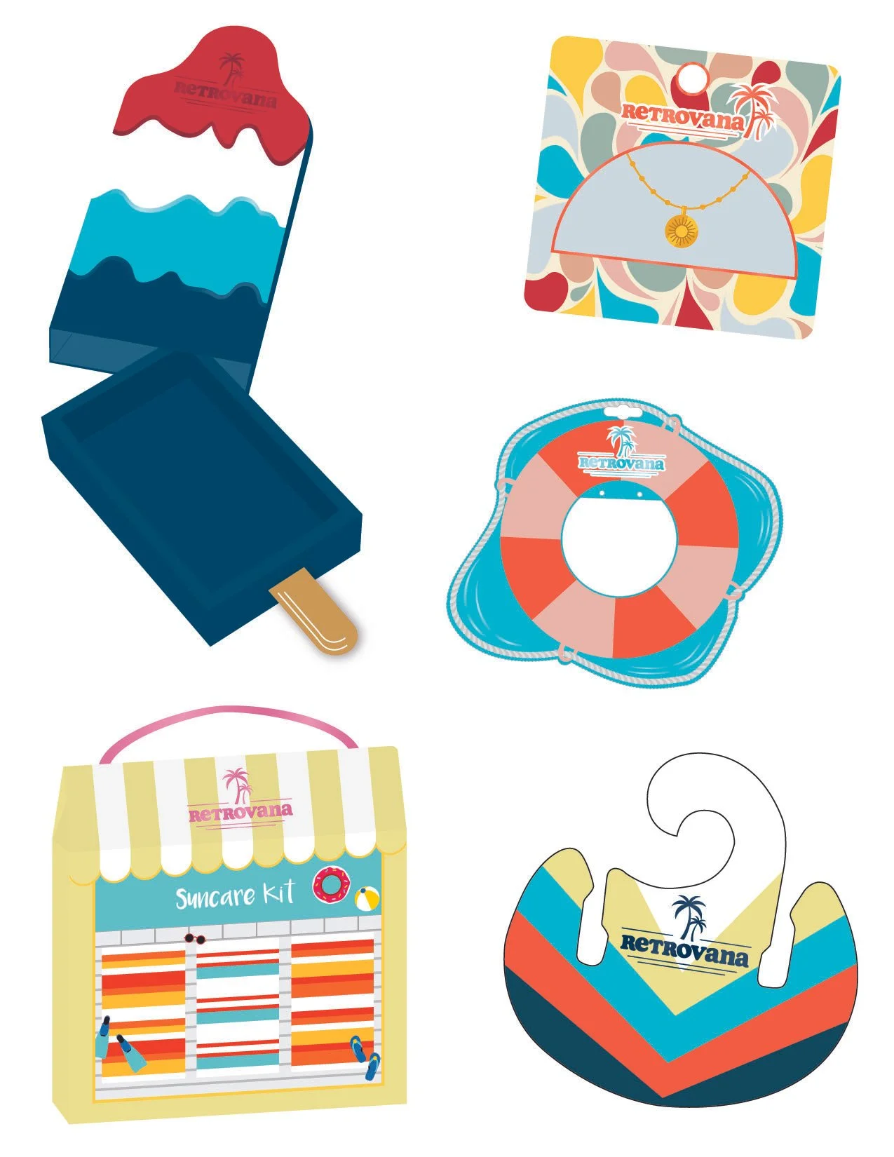 When designing the trend, I gather some patterns and icons to have a variety of inspiration and ideas. I start with creating dielines of what packaging products I will design. This way I can create an assortment of packaging concepts and tailor the packaging to products appropriate to the season. For example, packaging for products like flip flops, cosmetics, sunglasses, and hair accessories are popular for spring/summer products.