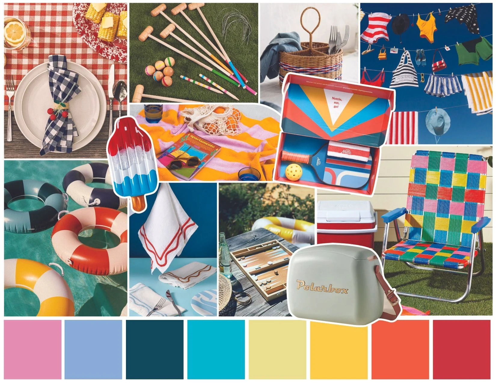 Rekindle the childhood joy and nostalgia of summer vacation with Retrovana. This trend’s poolside aesthetic is a love letter to leisure and cherished memories. Sporty iconography and backyard barbecue motifs capture the essence of summertime social gatherings with loved ones, and it’s bold use of color is as refreshing as an ice pop or a glass of lemonade on a sunny day. We’ve combined retro design elements with modern manufacturing techniques to develop pieces that capture both the eyes and hearts of consumers. Retrovana takes us back to basics with an effortless use of primary colors. Vibrant hues like Sunny Yellow, Cherry Red, and Piscene Blue make a splash on the shelf, while Crisp Navy and Urgent Orange bring about an elevated sporty feel.